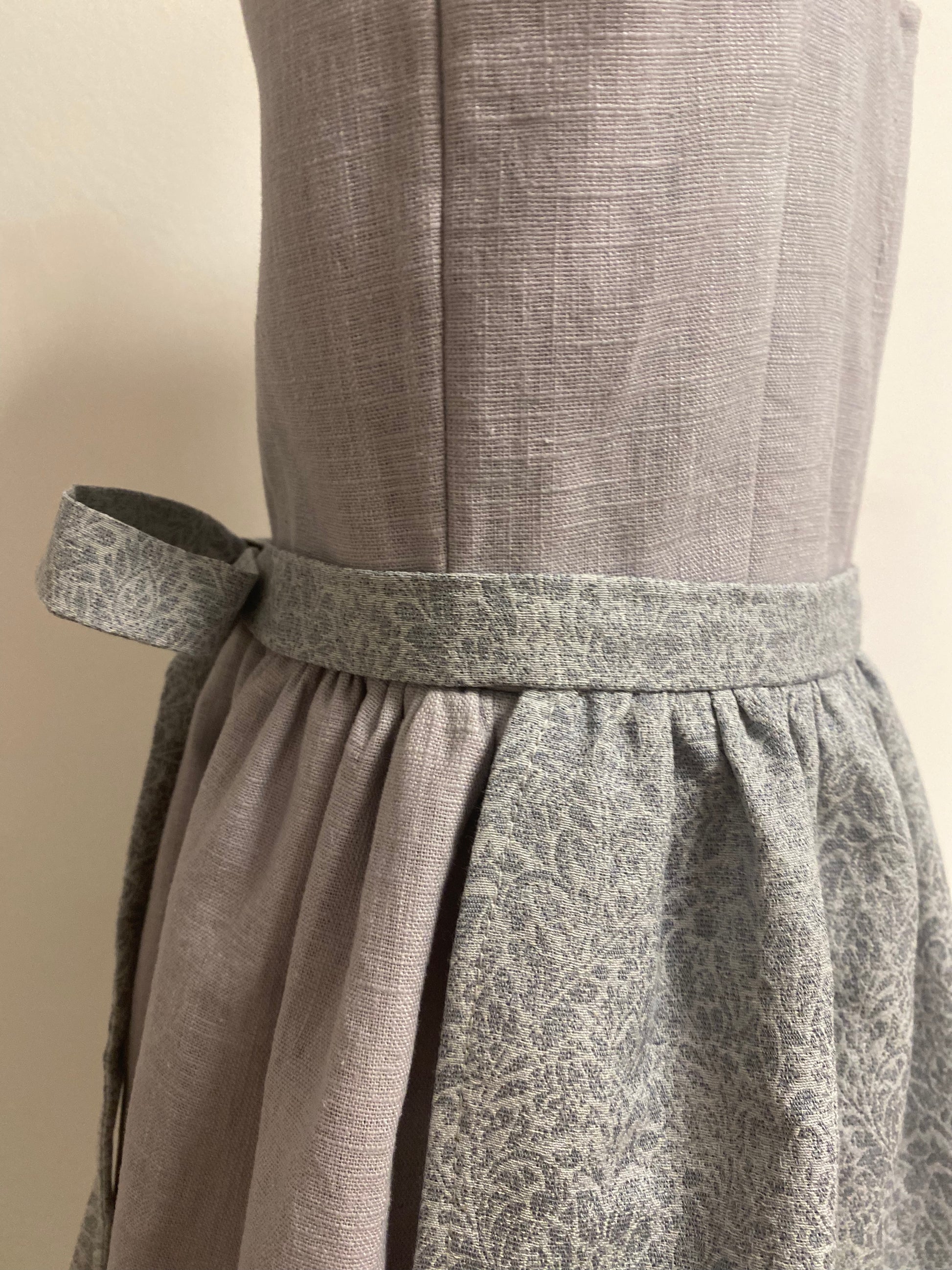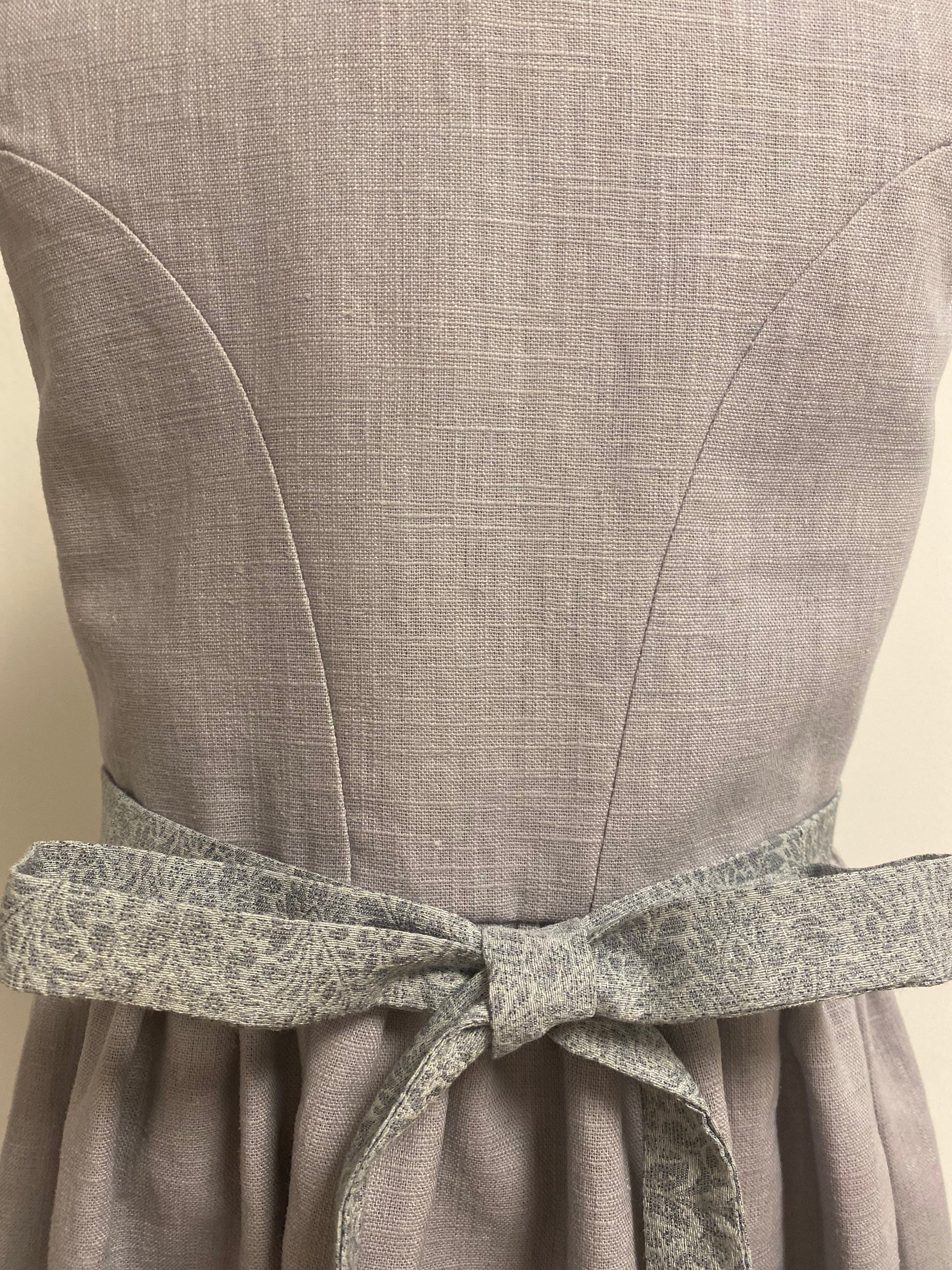 Dirndlleib aus feinem Reinleinen, gefüttert mit Baumwolle, der Rock ist ebenfalls aus Leinen und die Schürze von JilSilk, welche hinten oder vorne mit einer Masche gebunden wird. Eine kleine verspielte Spitze an der Schürze im selben Farbton wie das Dirndlkleid. Verschluss ist vorne, etwas verstärkt zur Stabilität und mit Häckchen zu schließen.