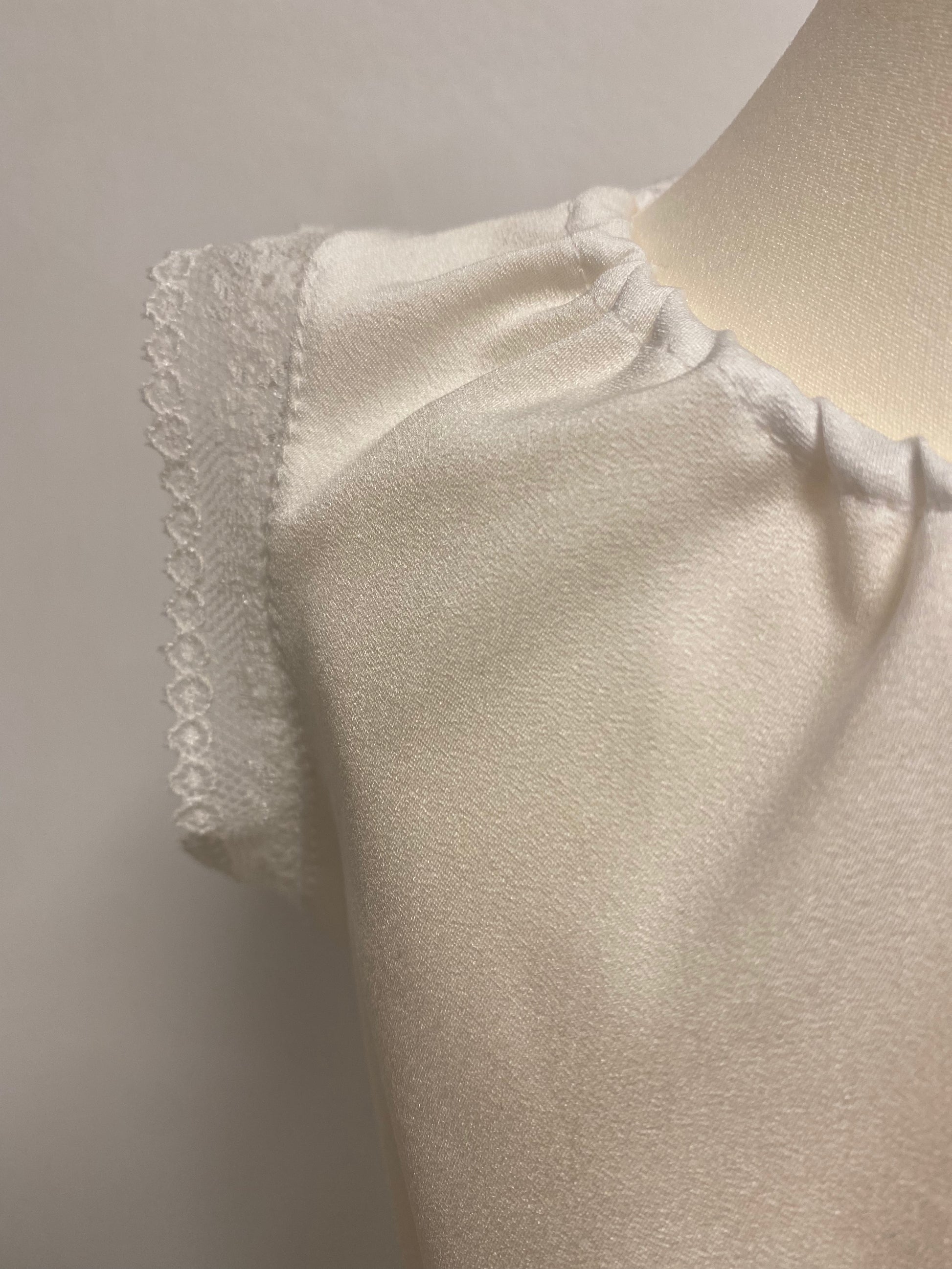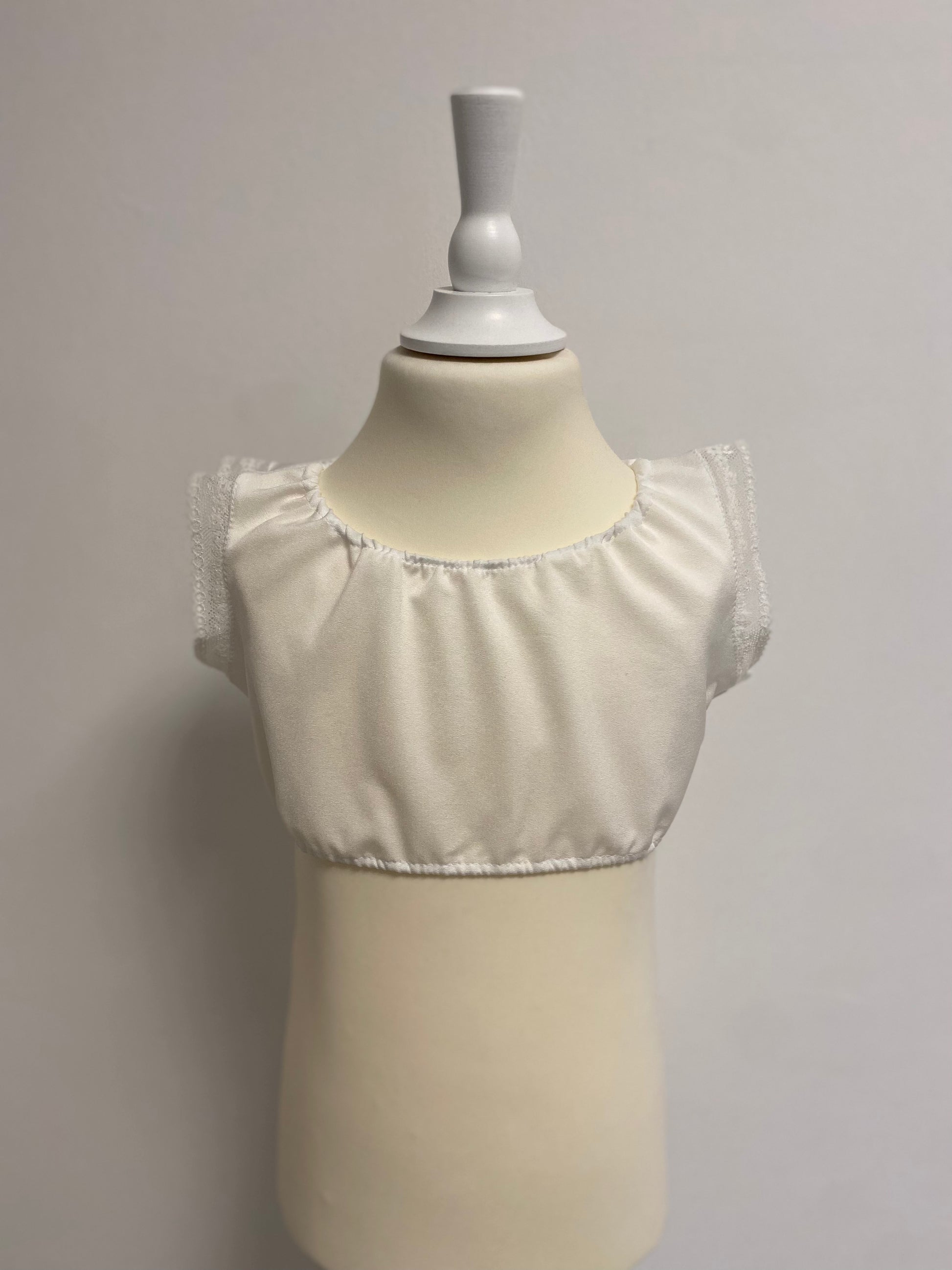 Dieses entzückende Bluserl ist aus einer feinen JilSilk Bauwollmischung mit edlem Glanz gefertigt. An den Ärmelenden und am Dekoltee ziert ein Gummibändchen die Rundungen und verhilft zu einer schönen Passform. Eine zierliche Spitze verziert die Mädchenschultern.